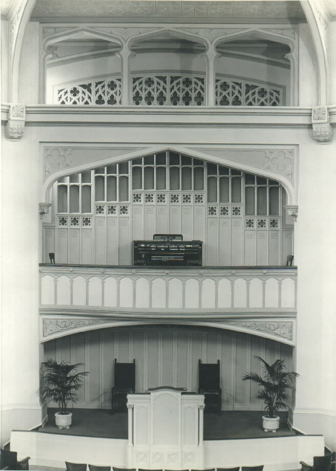| Great 8 Open Diapason 8 Doppel Flute 8 Viol de Gamba 8 Melodia 8 Dulciana 4 Flute Harmonic 8 Tuba Tremolo Chimes Gt Unison Off Gt to Gt 16-4 Sw to Gt 16-8-4 Ch to Gt 16-8-4 |