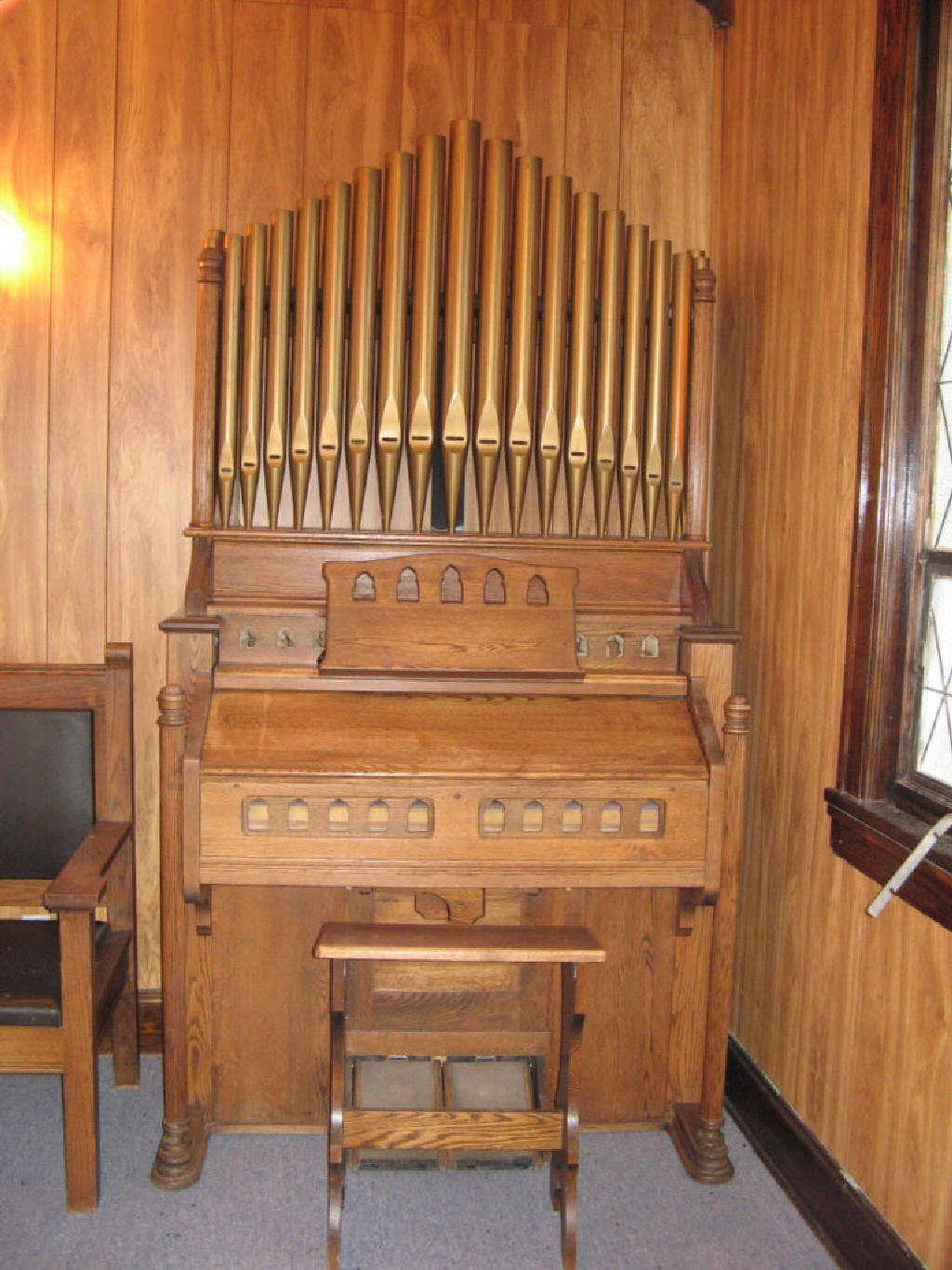 16 Bourdon 8 Diapason 8 Dulciana 4 Flute 8 Vox Jubilante 8 Choral Tremolo Forte II Treble Coupler |